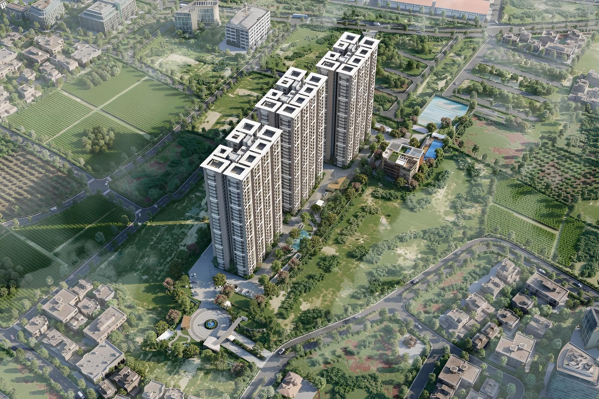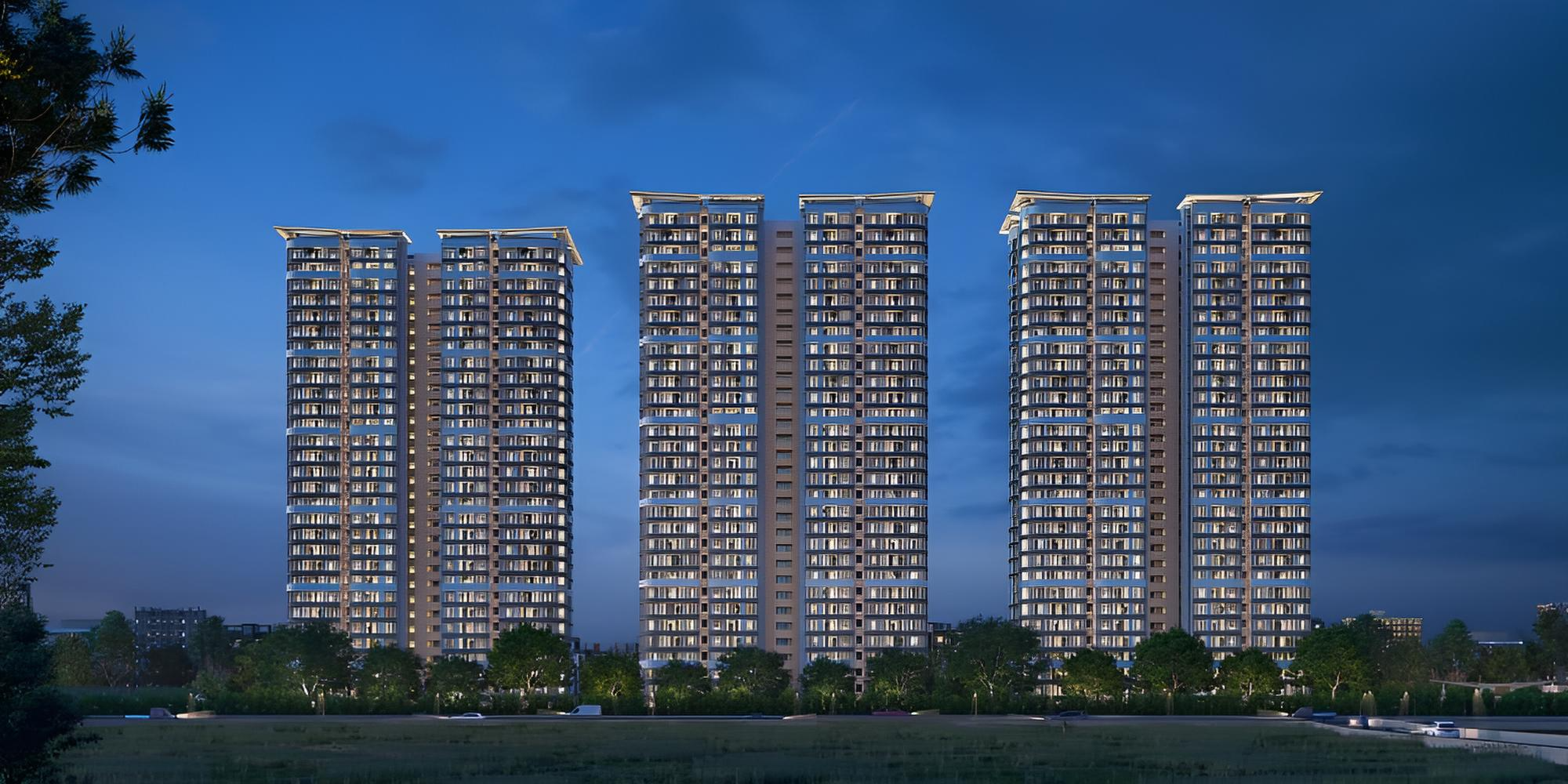 The project spreads over approximately 7.8 acres with 724 premium residences across three G+30 towers.